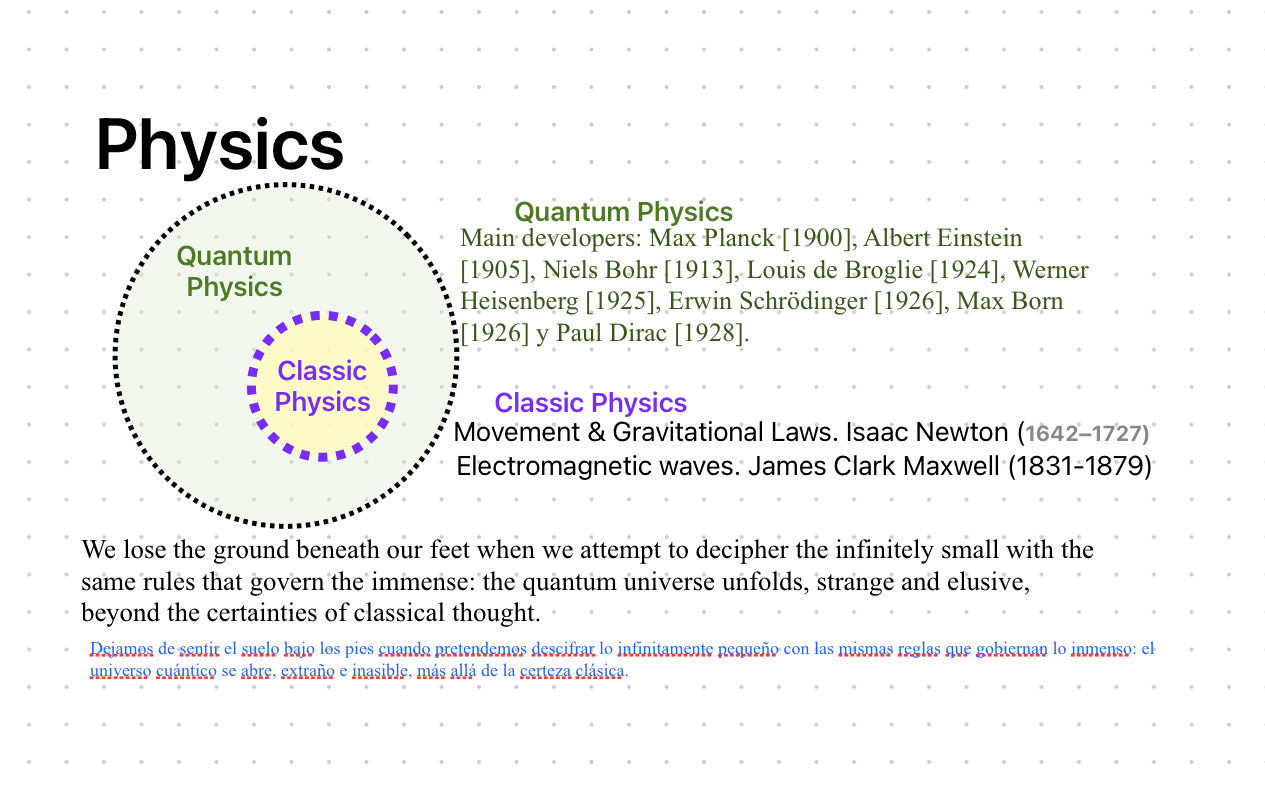 Quantum physics, born at the beginning of the 20th century, did not emerge in a vacuum. It was preceded by more than two centuries of classical physics, where the laws of Newton, Faraday, and Maxwell provided a coherent framework for understanding nature. Quantum theory does not deny that legacy but transcends it, revealing the limits of those conceptions.